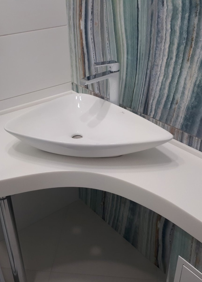 Правильно подобранная каменная столешница в ванную под раковину делает пребывание в этом помещении более уютным и комфортным.